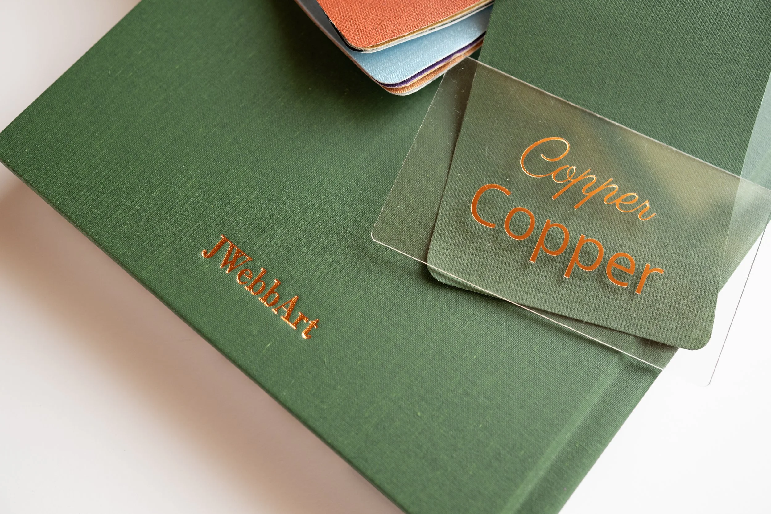 Feeling excited for choices? Excellent! There are countless possibilities and I’m happy to meet with you to show you swatches and examples in person. Or let me put together a bold combination & debossing that compliments your aesthetic!